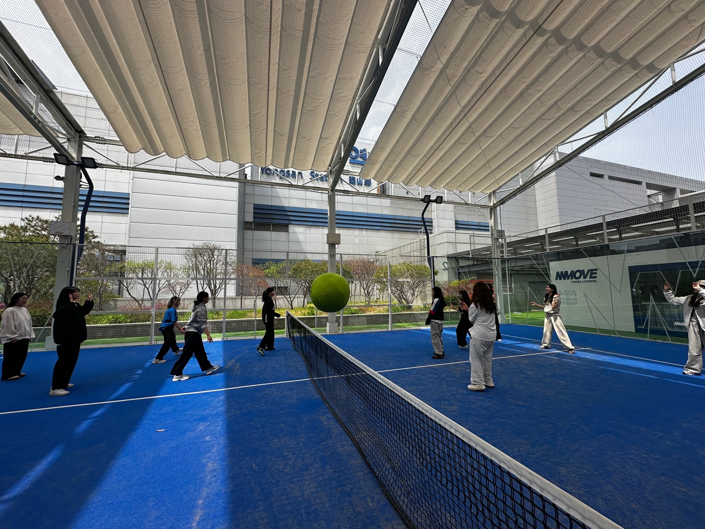 유아교육과 신입생 56명은 팀빌딩OT와 소그룹 빠델·피클볼 레슨을 통해 복식게임도 참여해 볼 수 있었다.