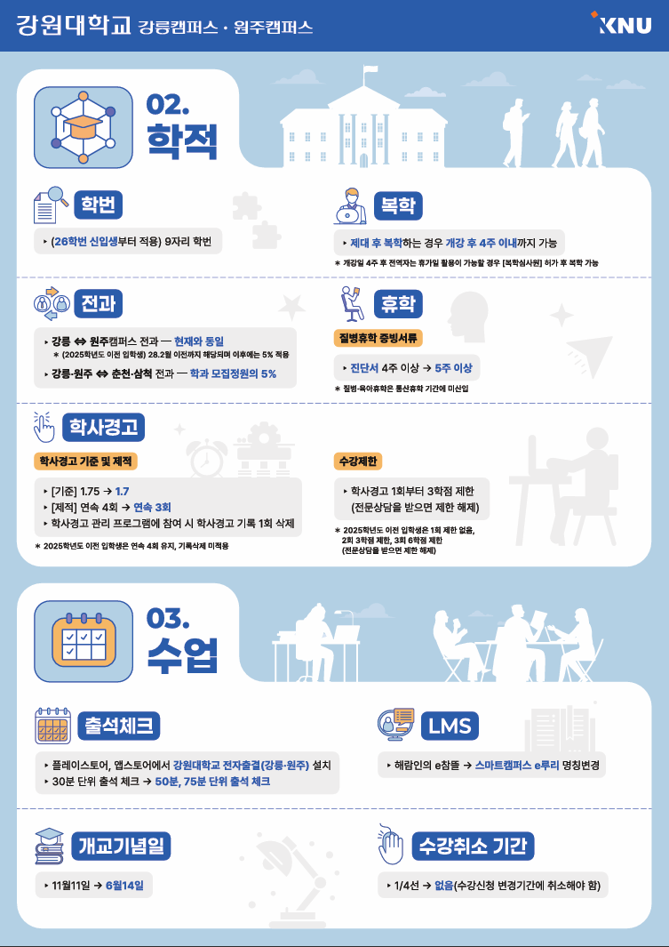 통합 강원대학교 교육과정 및 학사제도 안내 인포그래픽 배포