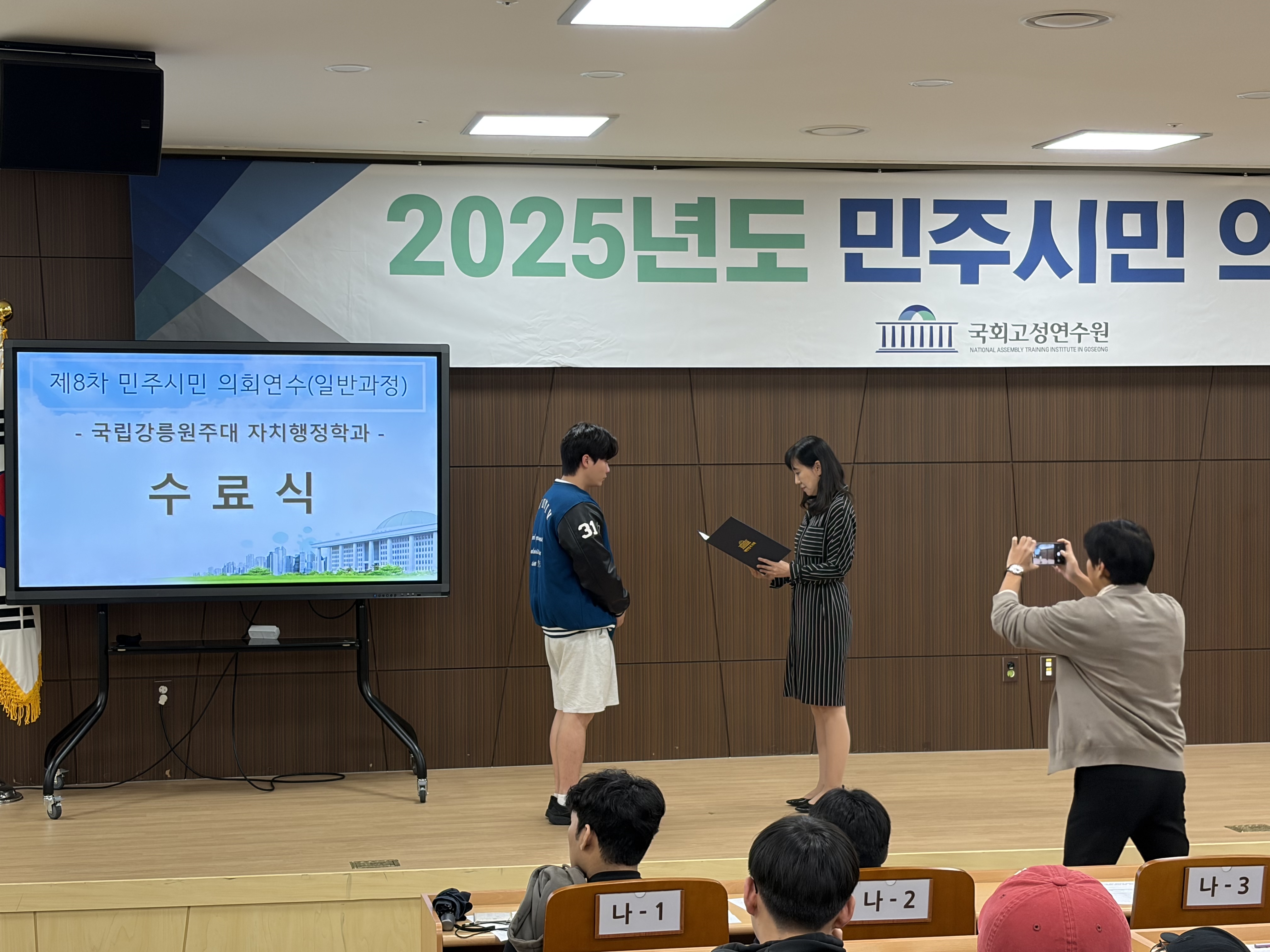 - 국회연수원 활동 관련 수료식 및 수료증 배부