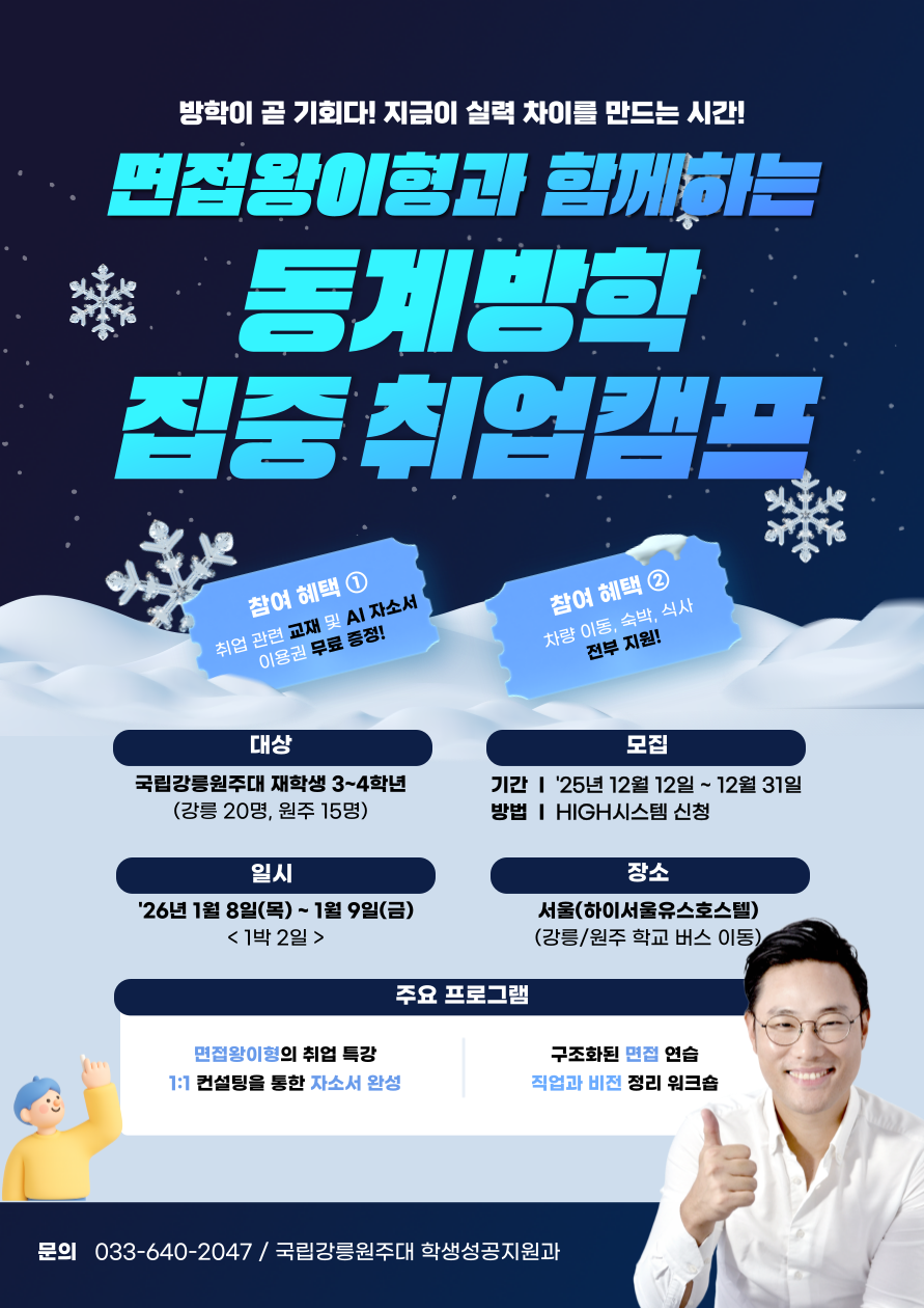 [학생성공지원과] 「면접왕이형과 함께하는 동계방학 집중 취업캠프」