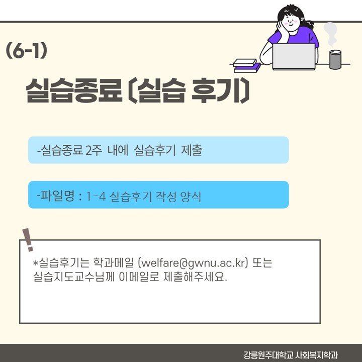 실습 기간 내에 필요한 서류들 잘 준비해서 빠짐없이 제출할 수 있길 바랍니다.