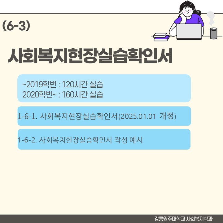 +) 1-6-1. 사회복지현장실습확인서 양식이 변경되었습니다. _2025.01.01.개정